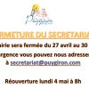 Fermeture secrétariat de Mairie