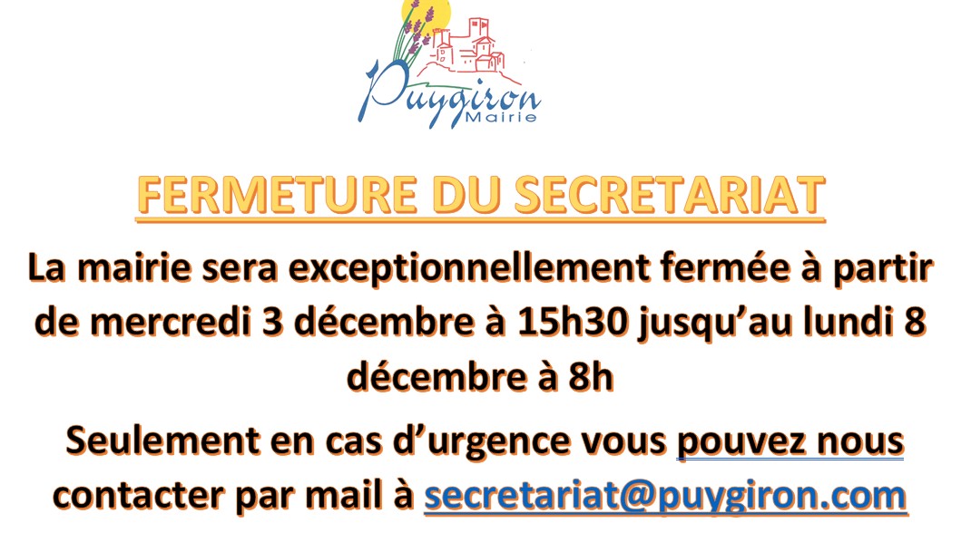Fermeture secrétariat de Mairie