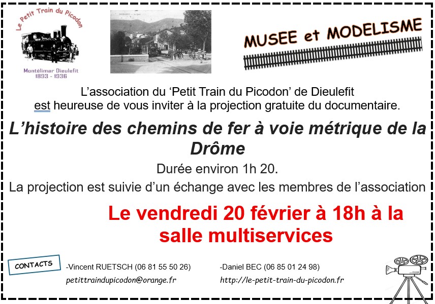 La Commune de Puygiron vous propose la projection gratuite d’un documentaire sur l’histoire des chemins de fer à voie métrique de la Drôme le vendredi 20 février à 18 heures à la salle Multiservices