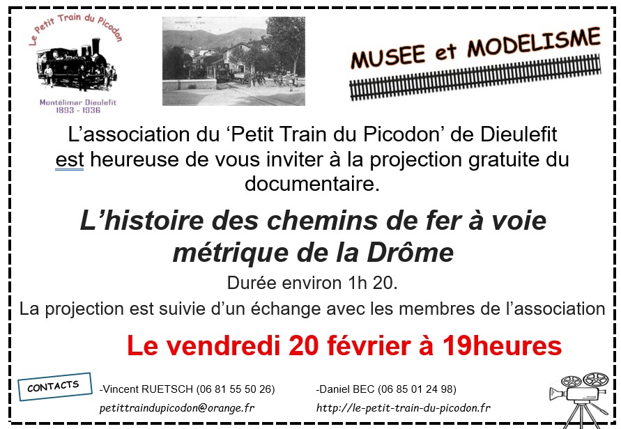 La Commune de Puygiron vous propose la projection gratuite d’un documentaire sur l’histoire des chemins de fer à voie métrique de la Drôme le vendredi 20 février à 19 heures