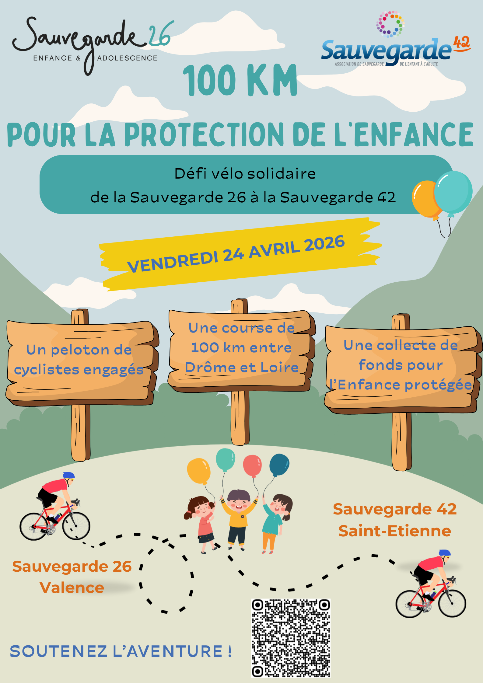 Le vendredi 24 avril prochain, la Sauvegarde se lance dans un défi à la fois sportif et solidaire : 100 km à vélo entre la Sauvegarde de Valence et celle de Saint Étienne, au profit de la Protection de l’Enfance, et plus particulièrement de la Maison des Petits.