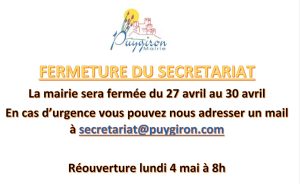 Fermeture secrétariat de Mairie